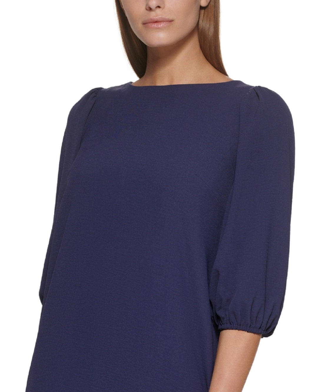 Effortlessly chic| DKNY's minimalist trapeze dress with a balloon sleeve and hem design boasts a relaxed yet figure-flattering silhouette that offers endless styling options for a versatile addition to your wardrobe.| Approx. 34-1/4 long from center back neck to hem. Length is based on size 4 and varies 1/4 between sizes | Crewneck| Back keyhole with button closure| Elbow-length blouson sleeves