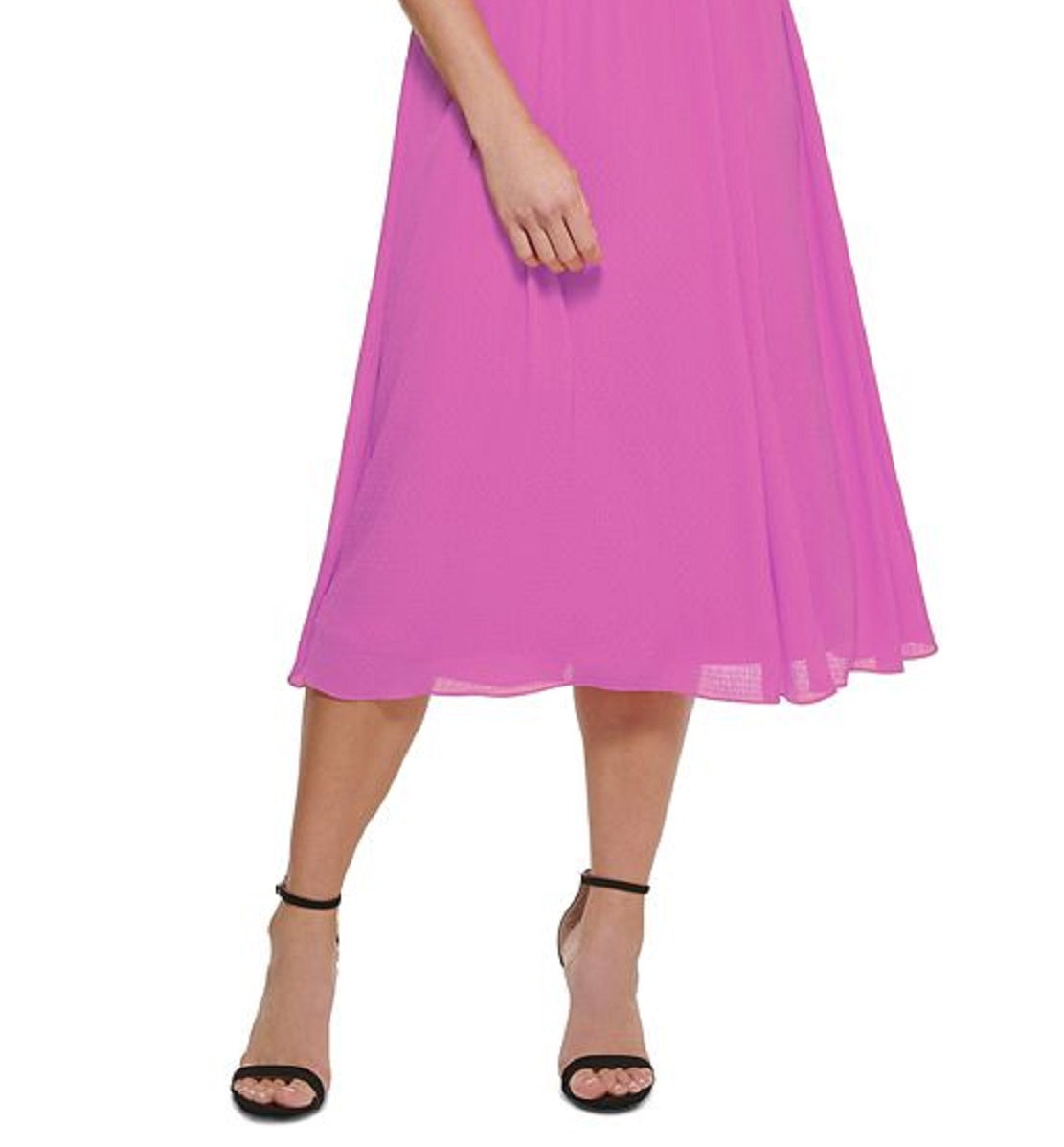 DKNY Women's Smocked Sleeve Midi Dress Pink Size 14