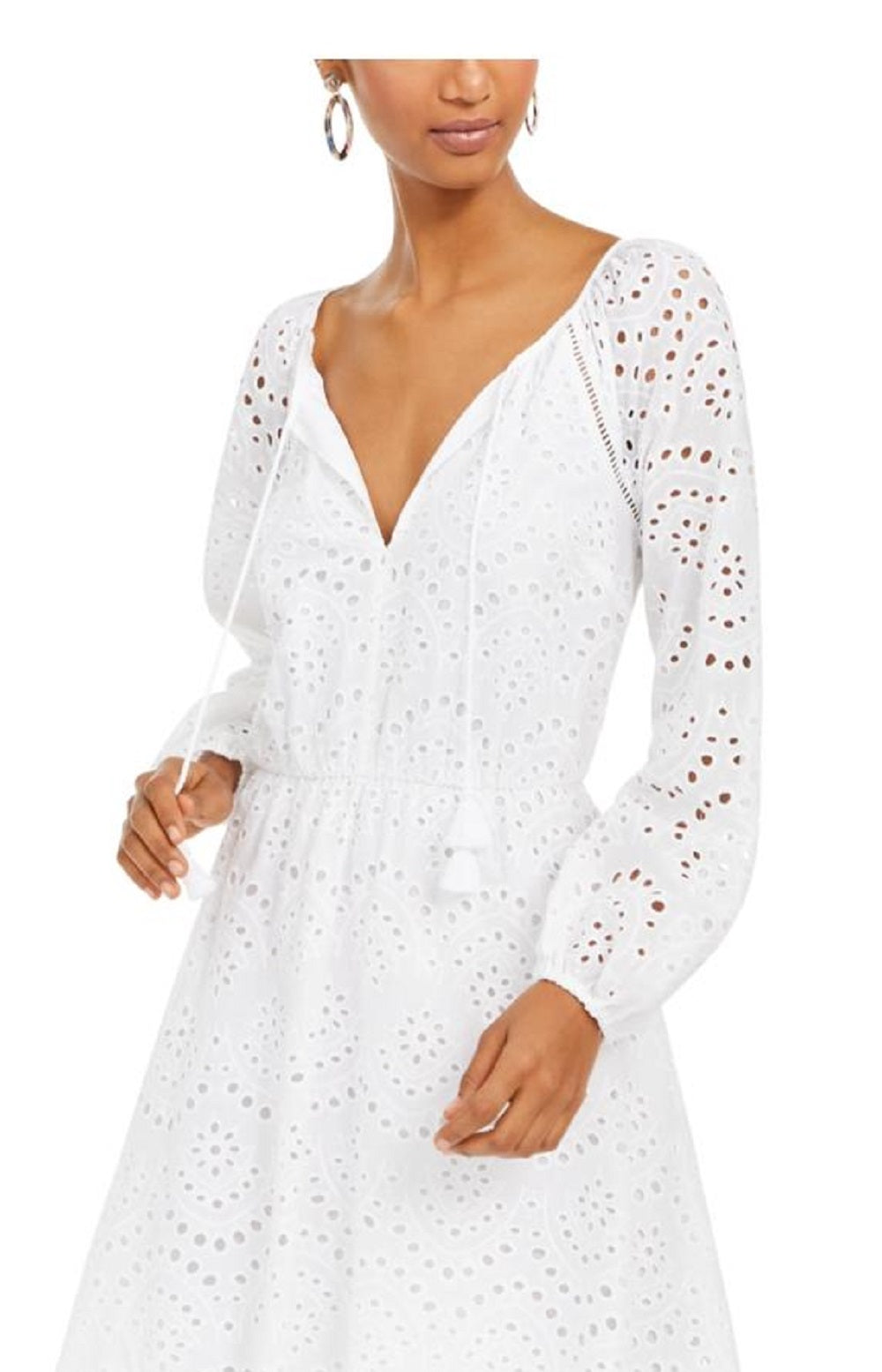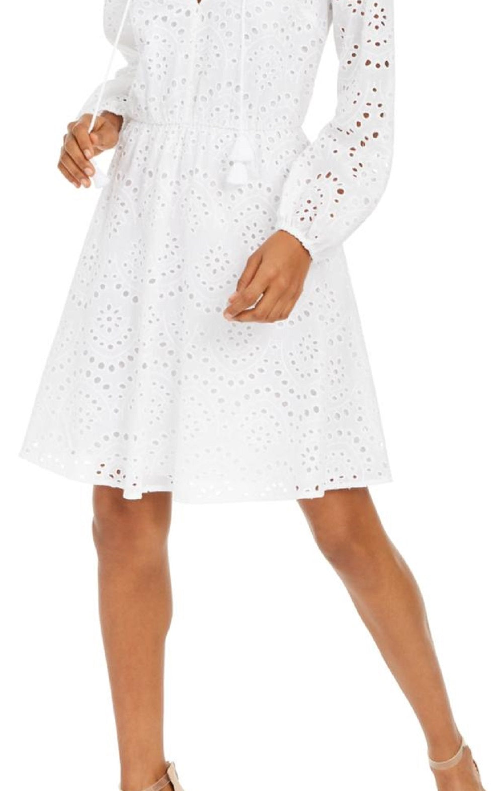 INC International Concepts Women's Cotton Eyelet Casual Dress White Size 12