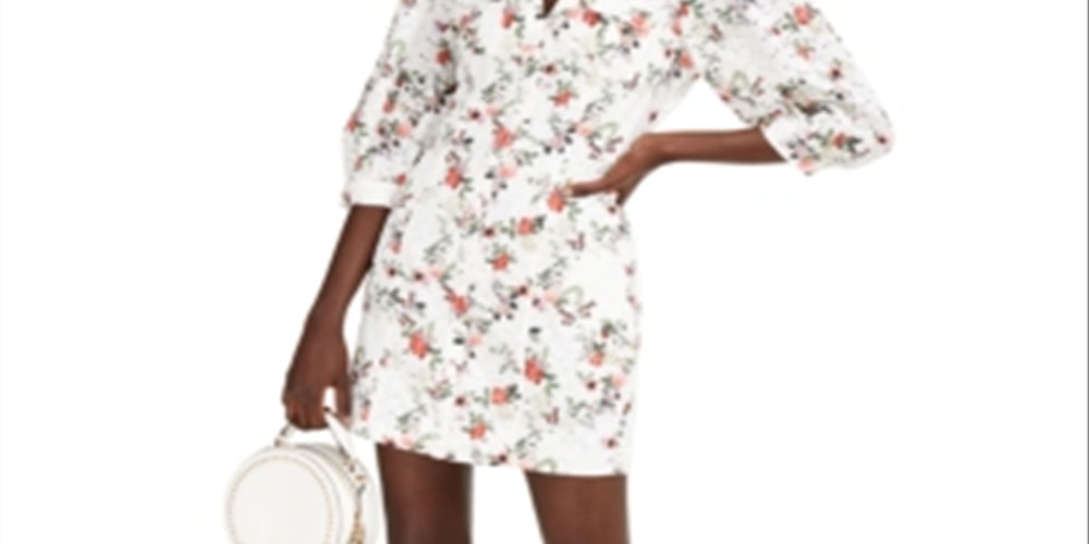 INC International Concepts Women's Eyelet Floral Mini Dress White Size 6