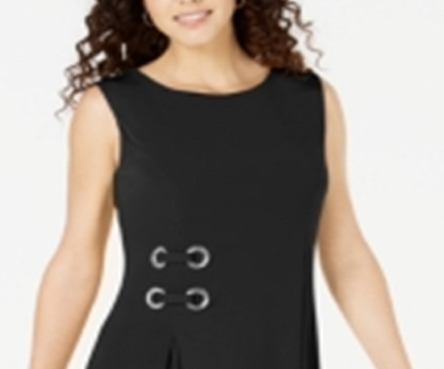 Metal grommets seamlessly woven in at the side gives this sleek dress from JM Collection unique flair and standout appeal|