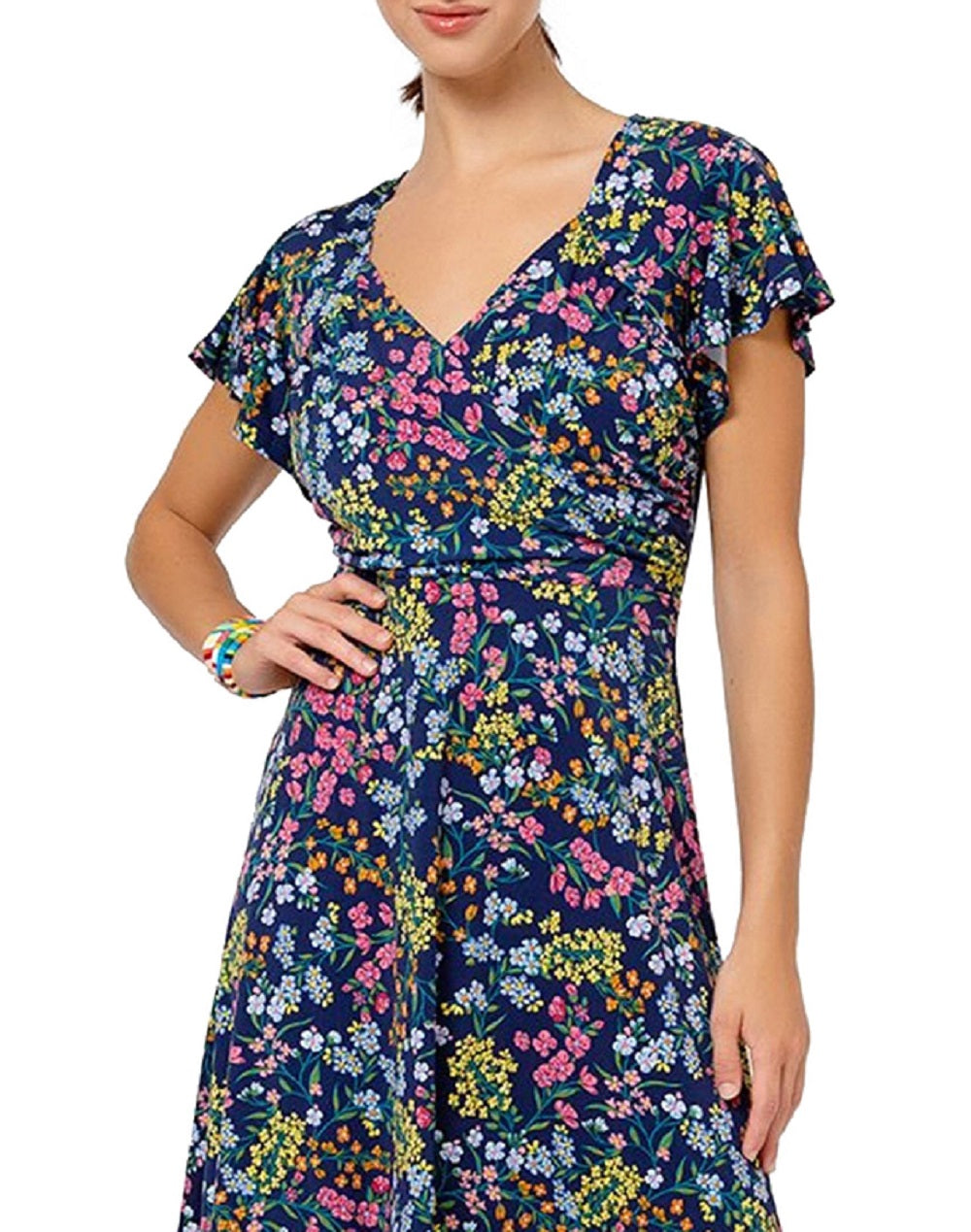 Leota Women's Sweetheart Faux Wrap Flutter Sleeve Dress Blue Size X-Large
