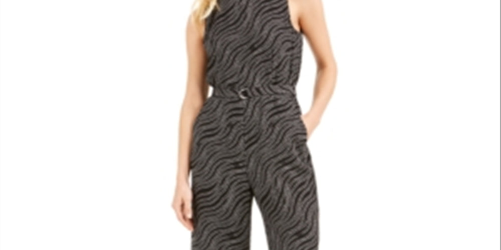 Michael Kors Women's Chain Print Belted Jumpsuit Black Size 12