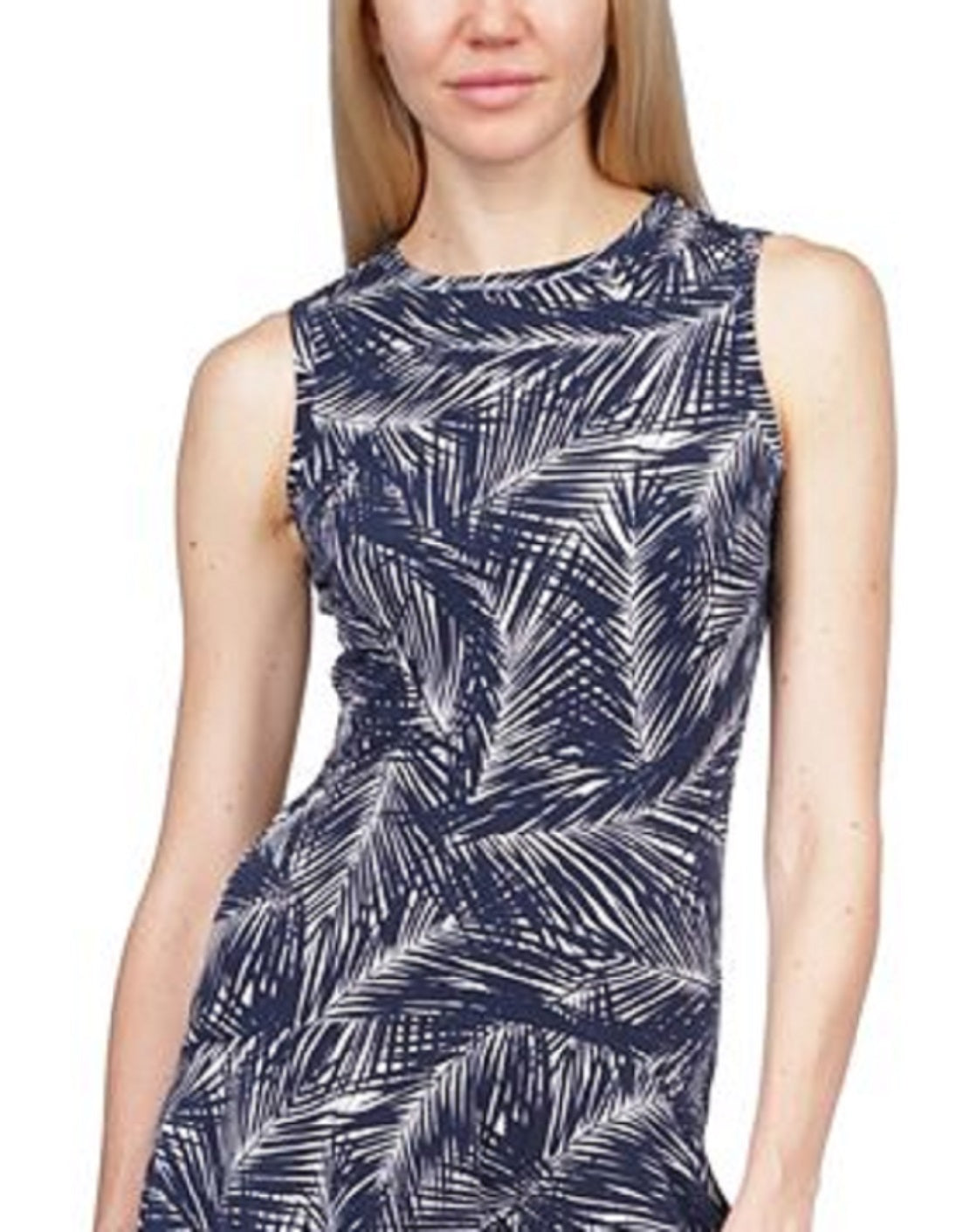 Michael Kors Palm Print Sleeveless Flounce Dress
