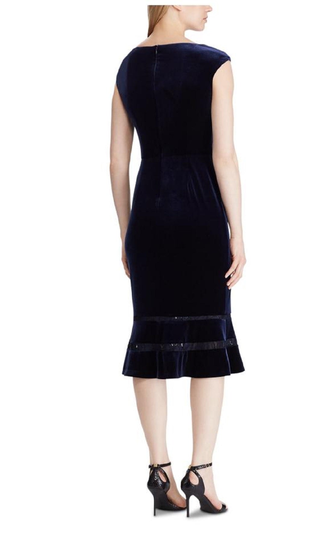 Ralph Lauren Women's Cap Sleeve V Neck MIDI Sheath Evening Dress Blue Size 0