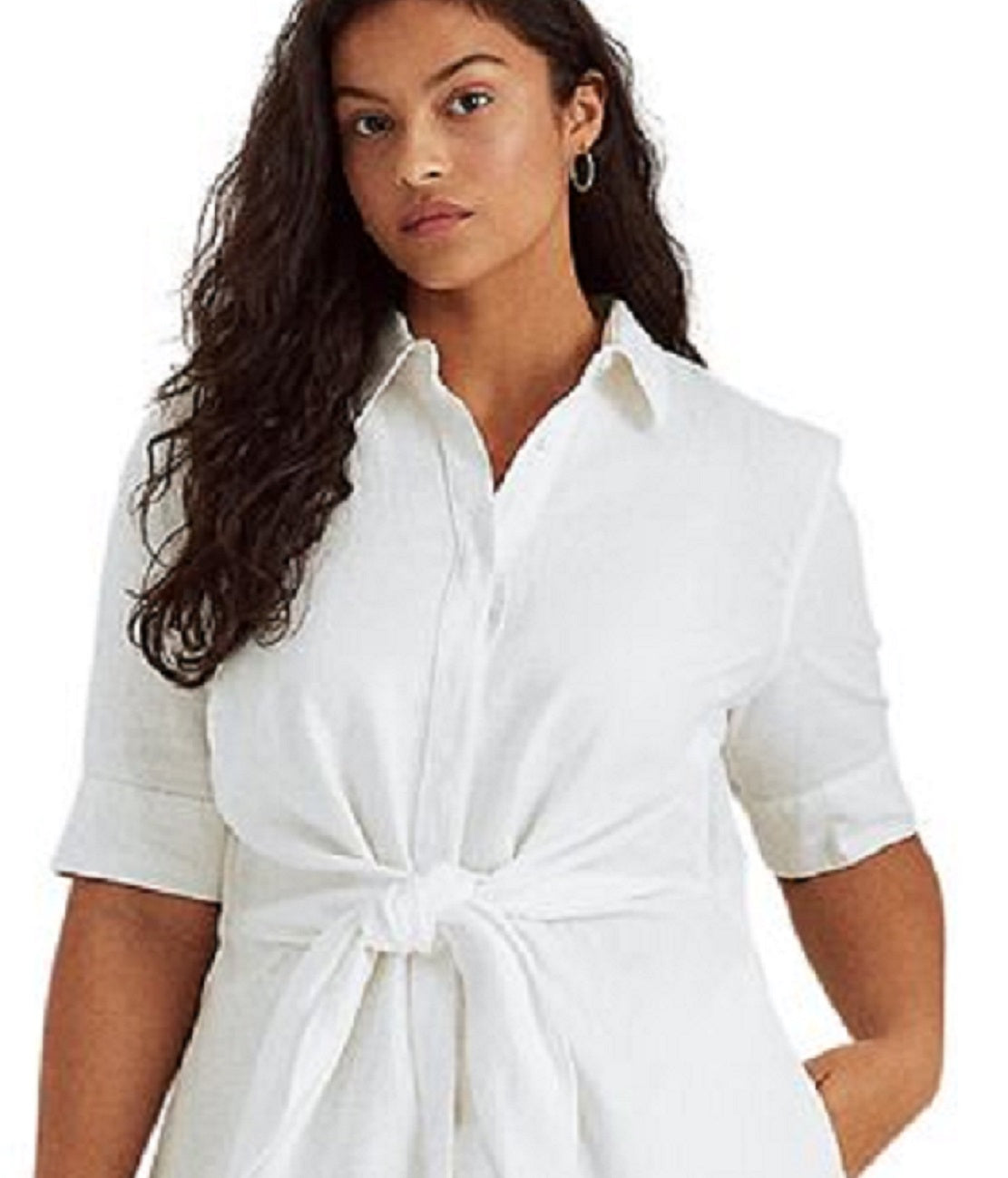 Bring on a charming update to your romantic date-night look wearing the Ralph Lauren Linen Shirtdress| Fit-and-flare shirtdress finished with a unique self-extended waist tie| Point collar neckline and elbow-length sleeves with buttoned barrel cuffs| Concealed buttoned closure| Ralph Lauren engraved buttons at the collar and cuffs| 100% linen| Dry-clean