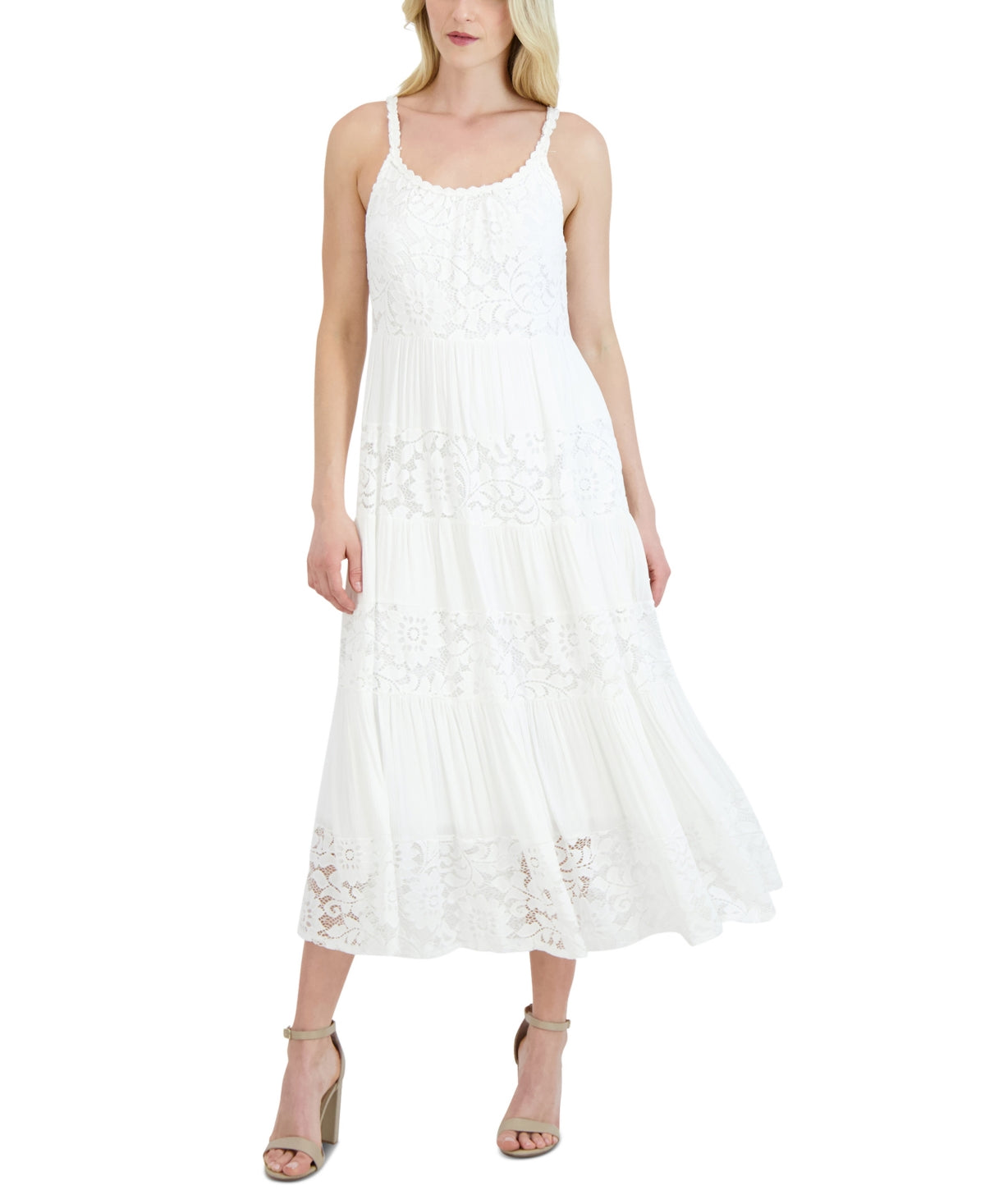 Lace; Delicate and light texture|Fitted through the chest and waist; structured A-line skirt sits slightly over hips|Allover lace|Pullover styling|Imported|Round neckline; A-line silhouette|XS=0-2