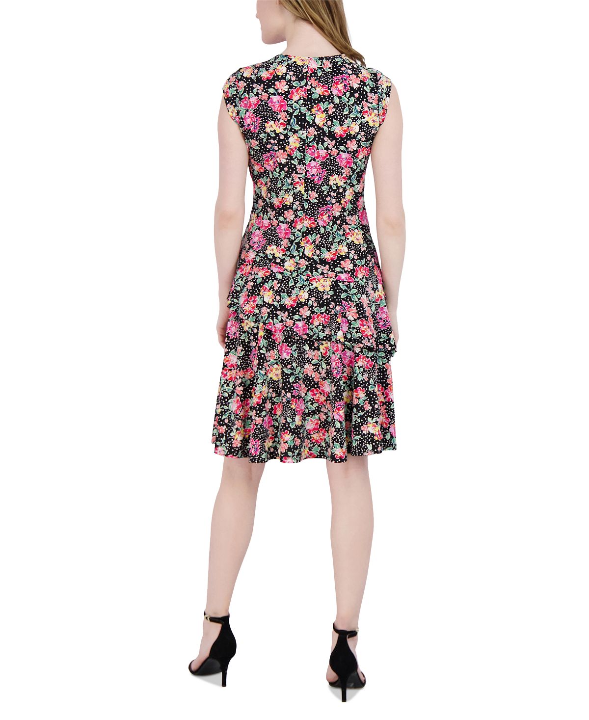 A bevy of blooms brightens this petite jersey dress from Robbie Bee| while romantic ruffles offer the perfect finishing touch.| Gathered at side waist; ruffle at skirt| Cap sleeves| Jersey-knit; Soft and stretchy| Imported| XS=0P-2P