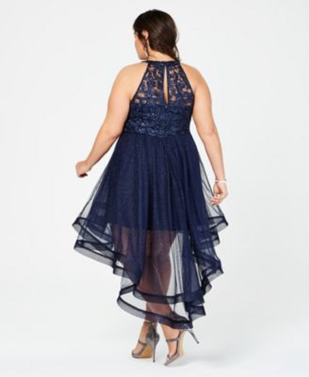 Halter neckline; Fit & flare silhouette|Hidden back zipper; back keyhole double hook-and-eye closure|Molded Cups. Shell, lining & trims: polyester