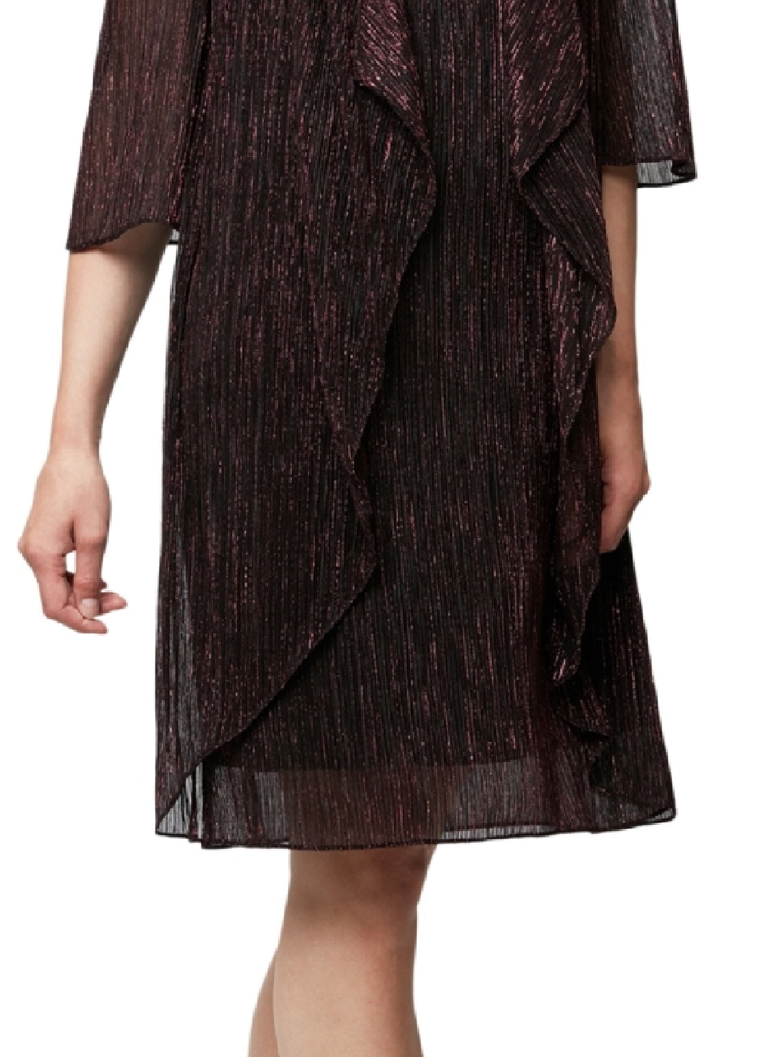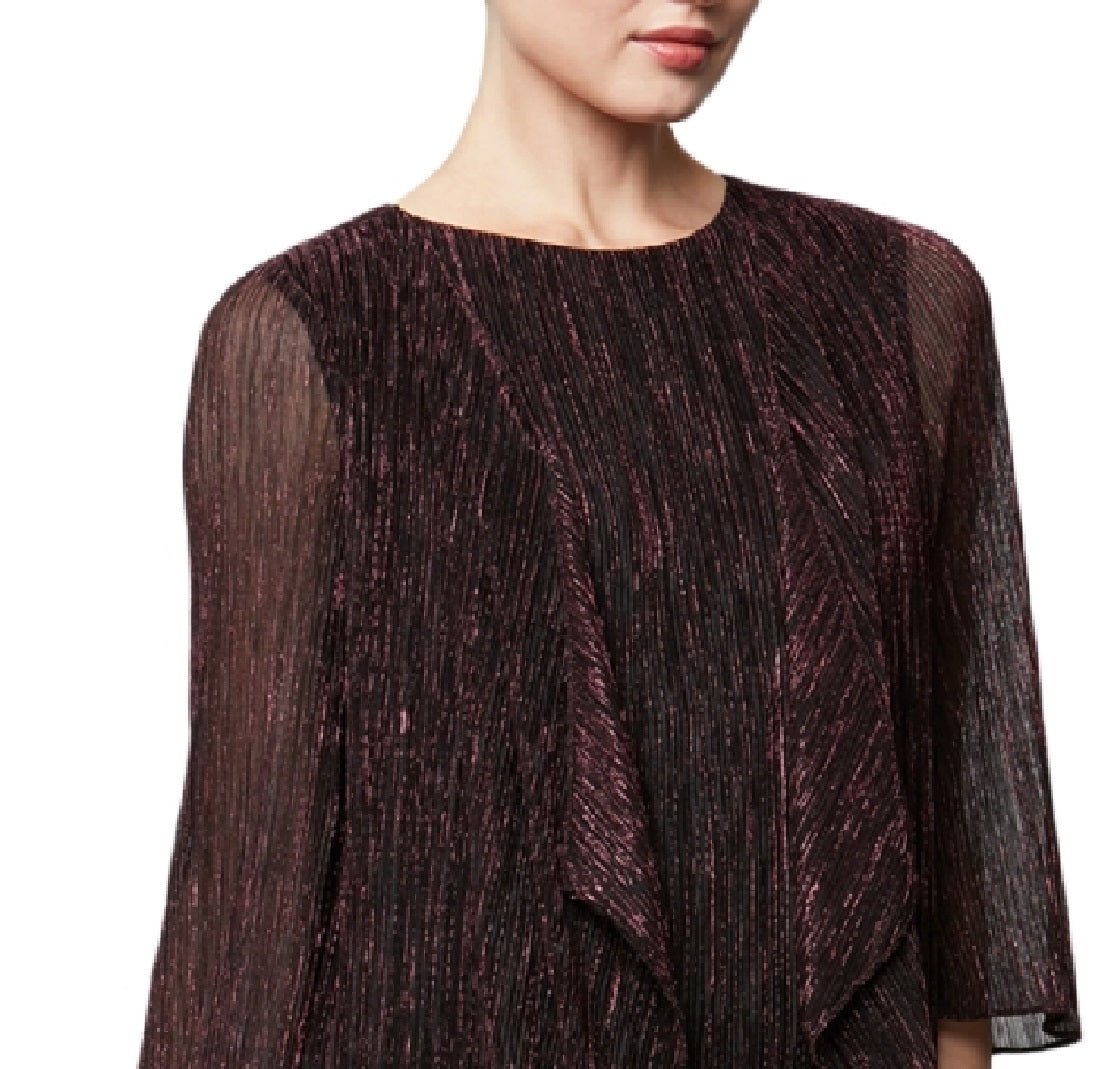 Back zipper closure|Crewneck; sheath silhouette|Lined|Attached jacket with draped open front|3/4-sleeves|Imported|Connect with a stylist & get free expert advice online or in stores for your wardrobe