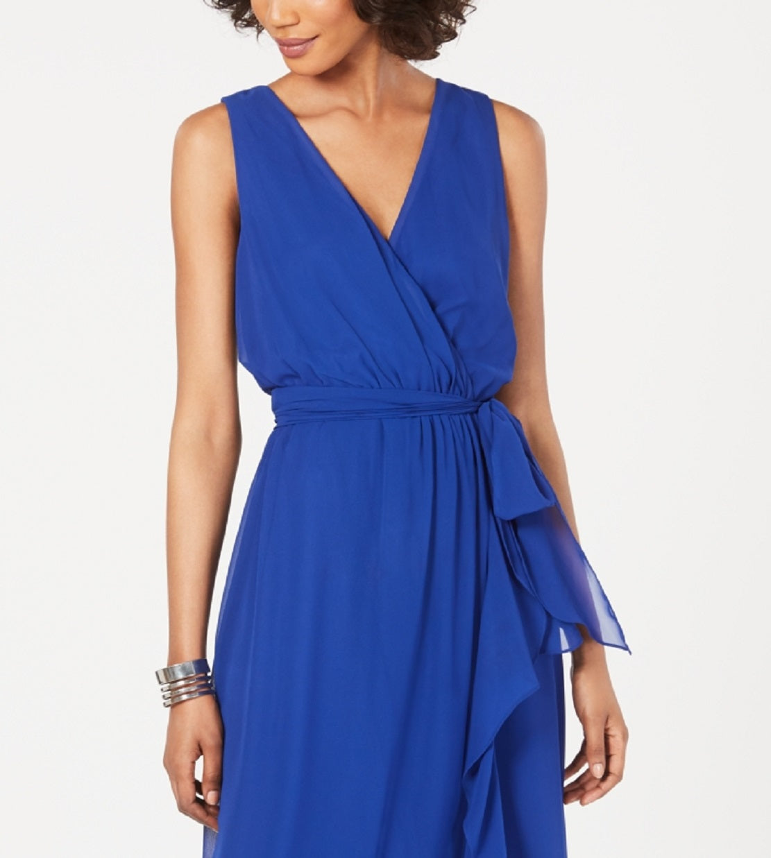 SL Fashions Women's Surplice High Low Maxi Dress Blue Size 6