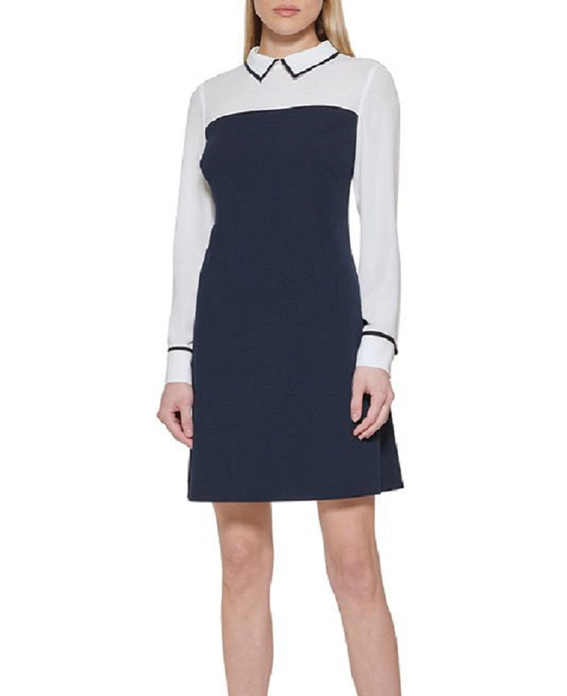 For a look that's chic and structured| Tommy Hilfiger presents this knock-out two-tone collared sheath dress