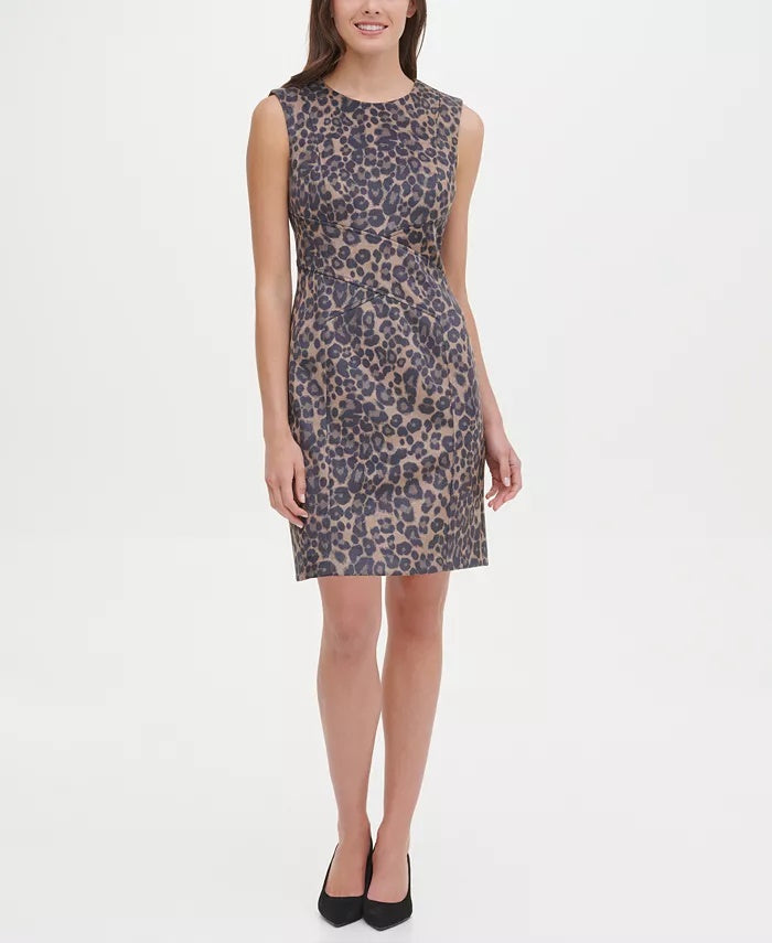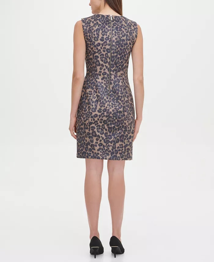 Tommy Hilfiger Women's Faux-Suede Leopard Scuba Sheath Dress Brown Size 10