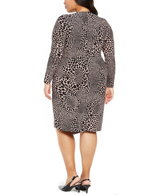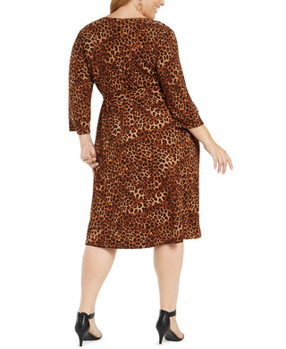 Alfani Women's Animal Print Faux Wrap Dress Purple Size 1X