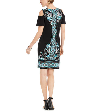 JM Collection Women's Printed Cold Shoulder Hot Fix Dress Black Size X-Large