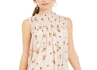 Style & Co Women's Printed Smocked Dress Beige Size PP