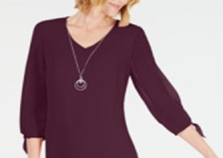 JM Collection Women's Tie Sleeve Necklace Dress Wine Size Petite XL