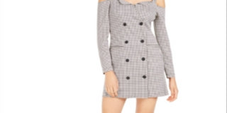 Bar III Women's A Line Cold Shoulder Houndstooth Dress Black Size XX-Small