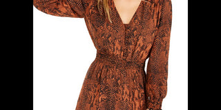 Bar III Women's Snake Print Smocked Mini Dress Brown Size Small