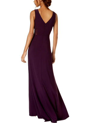 Morgan & Company Women's Sheer Slitted Sleeveless V Neck Full Length Formal Pencil Dress Purple Size 9-10