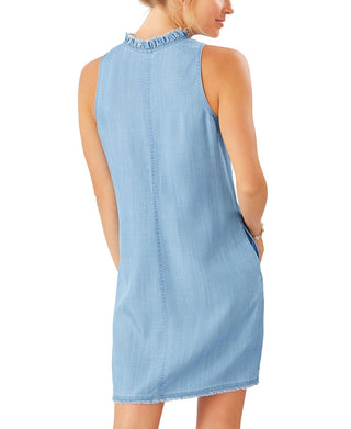 Tommy Bahama Women's Chambray Ruffle Shift Dress Blue Size Small