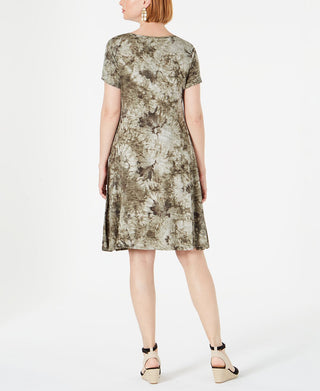 Style & Co Women's Graphic Tie Dyed Dress Green Size X-Small