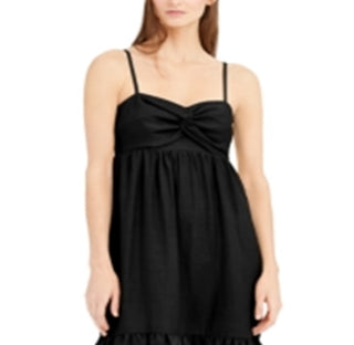 INC International Concepts Women's Linen Blend Twist Front MIDI Dress Black Size Medium