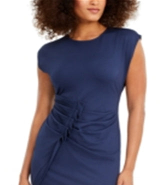 INC International Concepts Women's Sateen Ruched Midi Dress Blue Size Large
