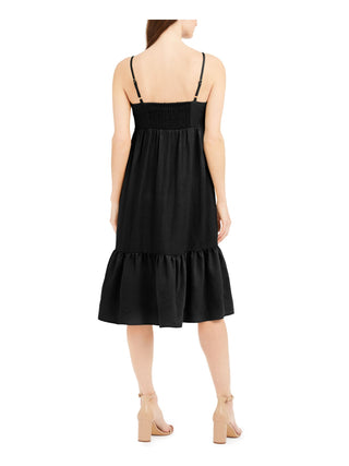 INC International Concepts Women's Solid Spaghetti Strap Sweetheart Neckline Below The Knee Fit Flare Dress Black Size Large
