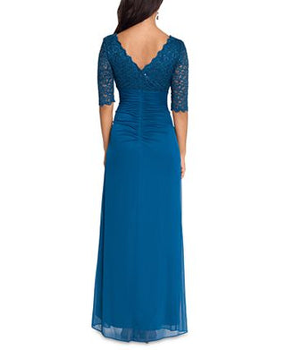 Betsy & Adam Women's Lace Top Waterfall Detail Gown Blue Size 16