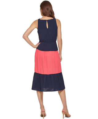 DKNY Women's Colorblocked Midi Dress Blue Size 14