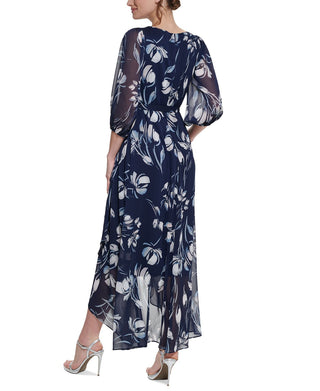 DKNY Women's Floral Print Faux Wrap Gown Blue Size 8