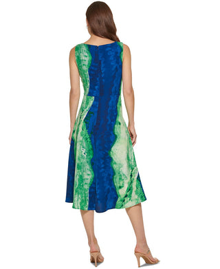DKNY Women's Printed Side Ruched Midi Dress Green Size 16