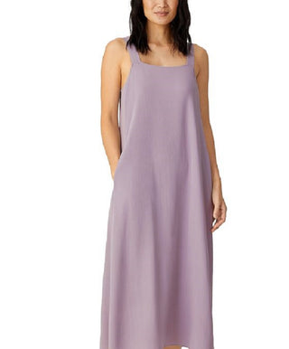 Eileen Fisher Women's Square Neck Silk Midi Dress Purple Size Large