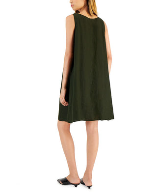 Eileen Fisher Women's Organic Linen Scoop Neck Dress Green Size Large