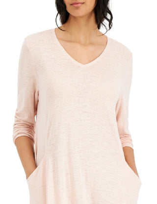 Eileen Fisher Women's V Neck Long Sleeve Knit Dress Pink Size Medium