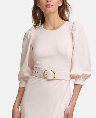 Calvin Klein Women's Balloon Sleeve Belted Sheath Dress Pink Size 4