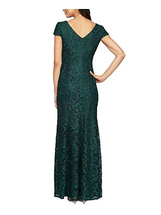 Alex Evenings Women's Lace V Neck Fit & Flare Gown Green Size 8