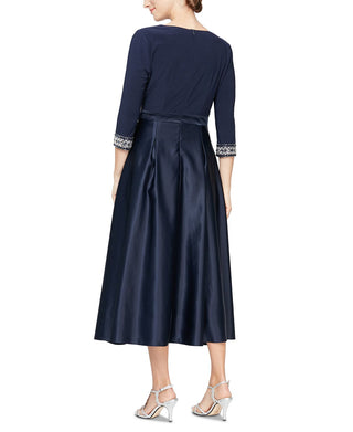 Alex Evenings Women's Mixed Media Midi Dress Blue Size 18
