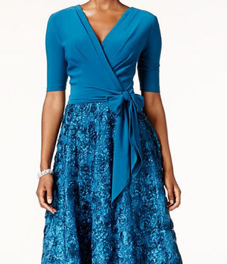 Alex Evenings Women's Surplice Neck Tea Length Dress Blue Size 8