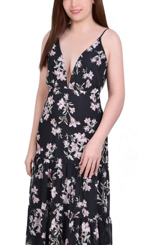 NY Collection Women's Tiered Spaghetti Strap Maxi Dress Black Size Large