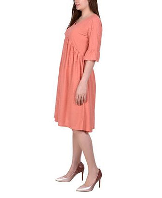 NY Collection Women's Elbow Sleeve Swiss Dot Empire Dress Orange Size Petite X-Large