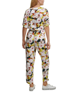 DKNY Women's Floral Print Jumpsuit Black Size 6