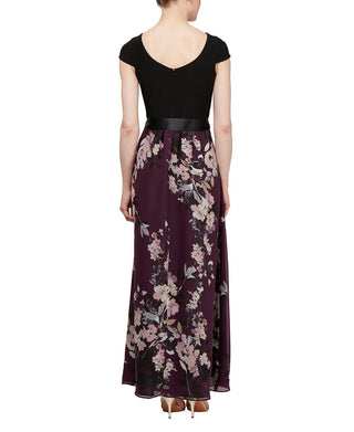 SL Fashions Women's Mixed Media Floral Maxi Dress Purple Size 6