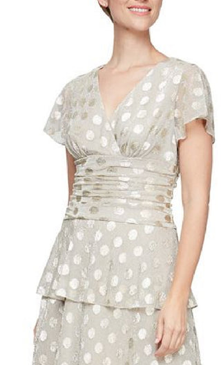 SL Fashions Women's Metallic Dotted Ruched Waist Dress Brown Size 12