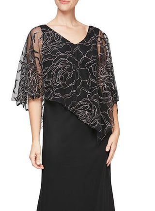 SL Fashions Women's Floral Glitter Popover V Neck Gown Black Size 8