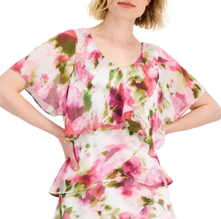 SL Fashions Women's Floral Print Tiered Dress White Size 18
