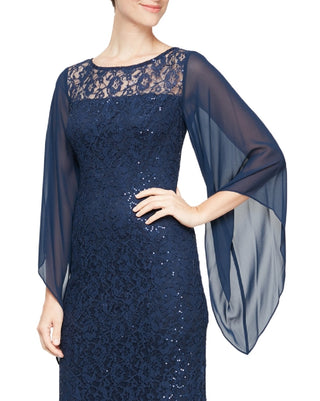 SL Fashions Women's Embellished Illusion Lace Gown Blue Size 10
