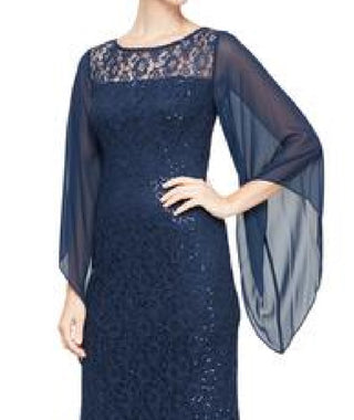 SL Fashions Women's 2 Pc Lace Jacket & Midi Dress Set Blue Size 14