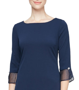 SL Fashions Women's Pleated Cuff Sheath Dress Blue Size 18